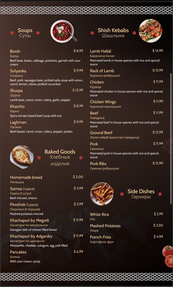 Welcome to Kavkaz Restaurant, a hidden gem nestled in Loganton, PA, celebrated for its authentic Middle Eastern cuisine. This family-friendly spot offers a cozy, welcoming atmosphere, perfect for groups and kids alike. With a diverse menu featuring options like the beloved Beef Stroganoff and unforgettable homemade bread, Kavkaz combines comfort with quality, ensuring each dish is prepared with love and care.